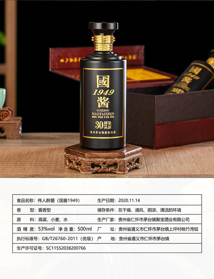 本网页所展示的有关【贵州茅台镇53度酱香型白酒黄国酱1949酒陈酿酒粮食老酒整箱礼盒_白酒_贵州省仁怀市黔忆醉酒业销售有限公司】的信息/图片/参数等由中国酒水的会员【贵州省仁怀市黔忆醉酒业销售有限公司】提供,由中国酒水会员【贵州省仁怀市黔忆醉酒业销售有限公司】自行对信息/图片/参数等的真实性、准确性和合法性负责,本平台(本网站)仅提供展示服务,请谨慎交易,因交易而产生的法律关系及法律纠纷由您自行协商解决,本平台(本网站)对此不承担任何责任。您在本网页可以浏览【贵州茅台镇53度酱香型白酒黄国酱1949酒陈酿酒粮食老酒整箱礼盒_白酒_贵州省仁怀市黔忆醉酒业销售有限公司】有关的信息/图片/价格等及提供【贵州茅台镇53度酱香型白酒黄国酱1949酒陈酿酒粮食老酒整箱礼盒_白酒_贵州省仁怀市黔忆醉酒业销售有限公司】的商家公司简介、联系方式等信息。